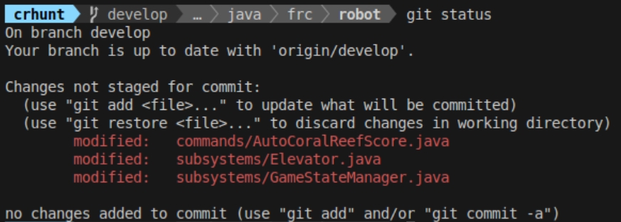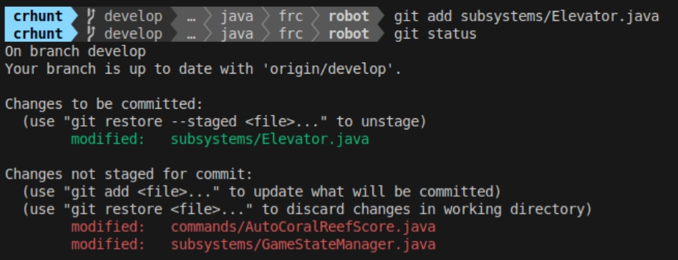All new changes made to your repo are considered unstaged until manually staged into your commit index. Staged changes will be added to your next commit. You can see the current staged status of your changes by running the command below.